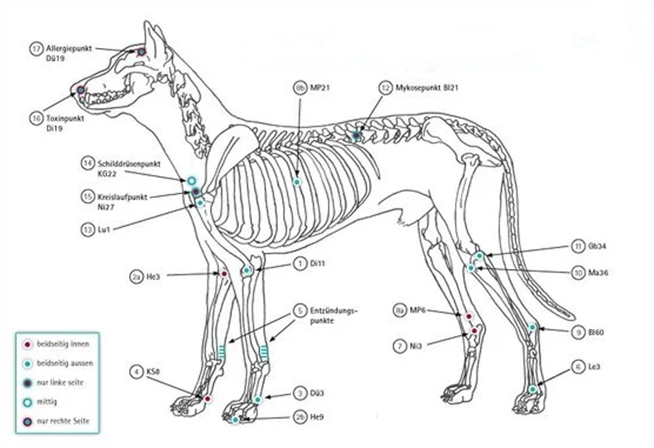 Arthrosen, Atemwegserkrankungen, Distorsionen (Verstauchung), Frakturen, Gewebsverschlackung, Harn-/Kotverhalt, Hufrehe, Inkontinenz, Muskelatrophie, Myogelosen (Verhärtung), Myopathie (Schwäche der Muskultaur) zum Muskelaufbau, Leistungssteigerung, Lymphmobilisation, Nervenläsionen, Neuralgien, Paresen (Lähmung), Regenration, Rückenmarksläsionen, Spastiken, Überlastungsläsion, Weichteilläsion, Wirbelsäulensyndrome, allgemeine Gelenkserkrankungen wie HD (Hüftdysplasie), ED (Ellenbogendysplasie), OCD (Knorpelerkrankungen), Sehnenschäden